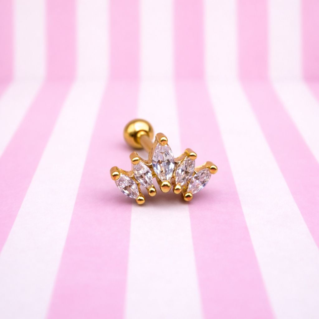 Découvre le piercing SARAH, un bijou lumineux et raffiné, composé de zircons délicatement disposés pour un effet éclat élégant et moderne. Son design fin apporte une touche sophistiquée tout en restant discret, idéal pour sublimer un ear stack.